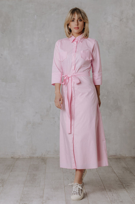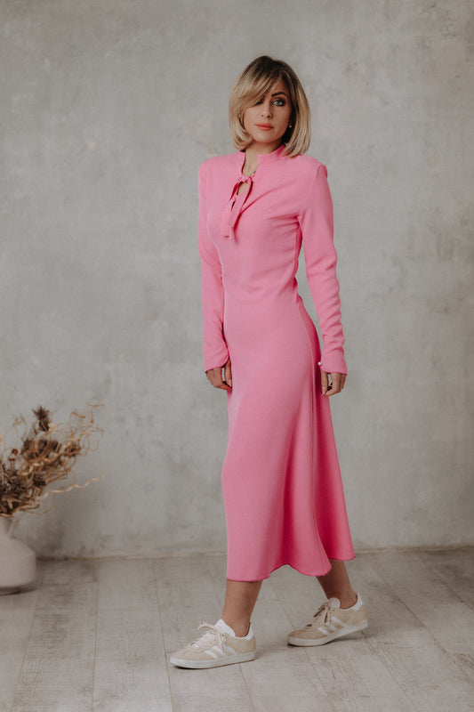 ElfogyottNyakban megkötős ruha rózsaszín színben