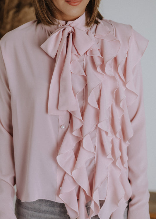 Curled ruffle blouse in powder color
