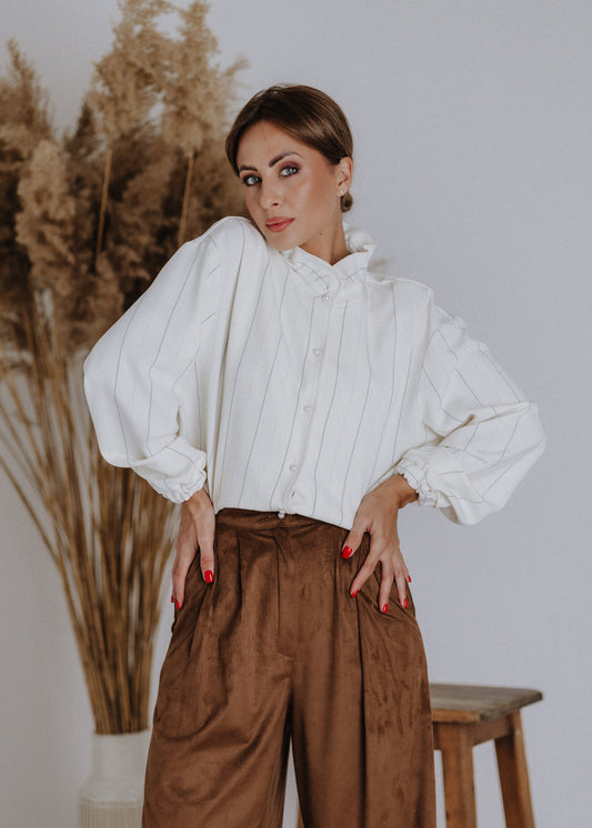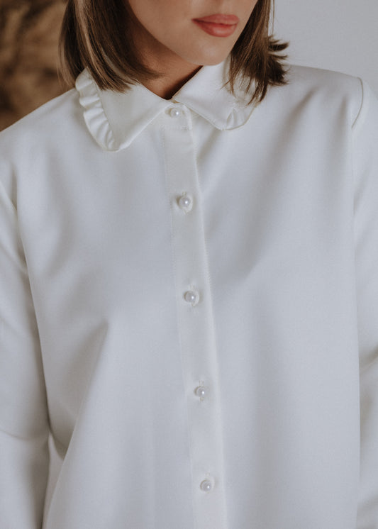 Shirt with ruffled collar in ecru