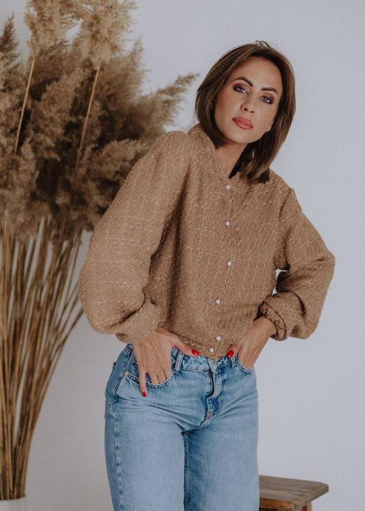 Bomber-style top made of bouclé fabric