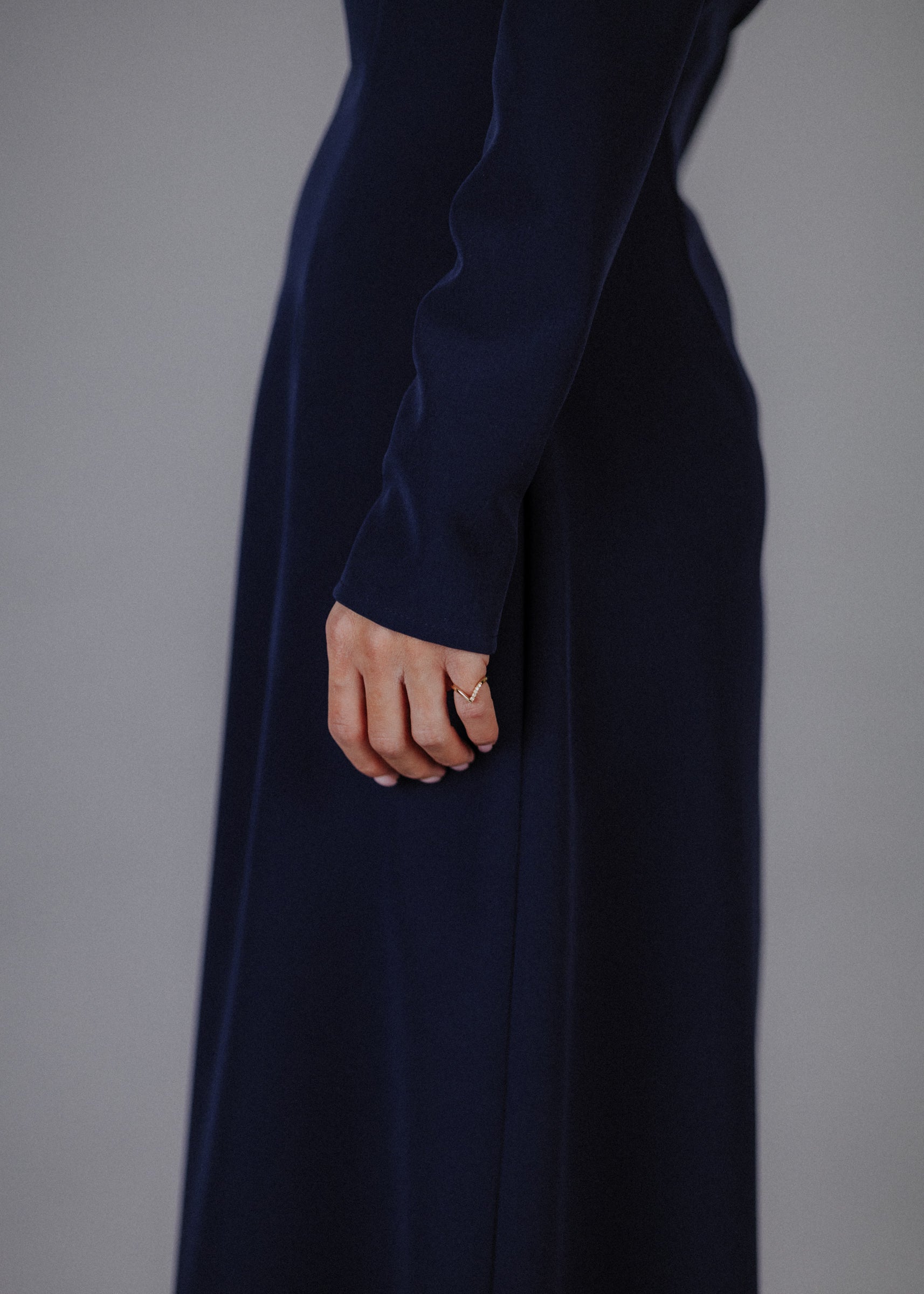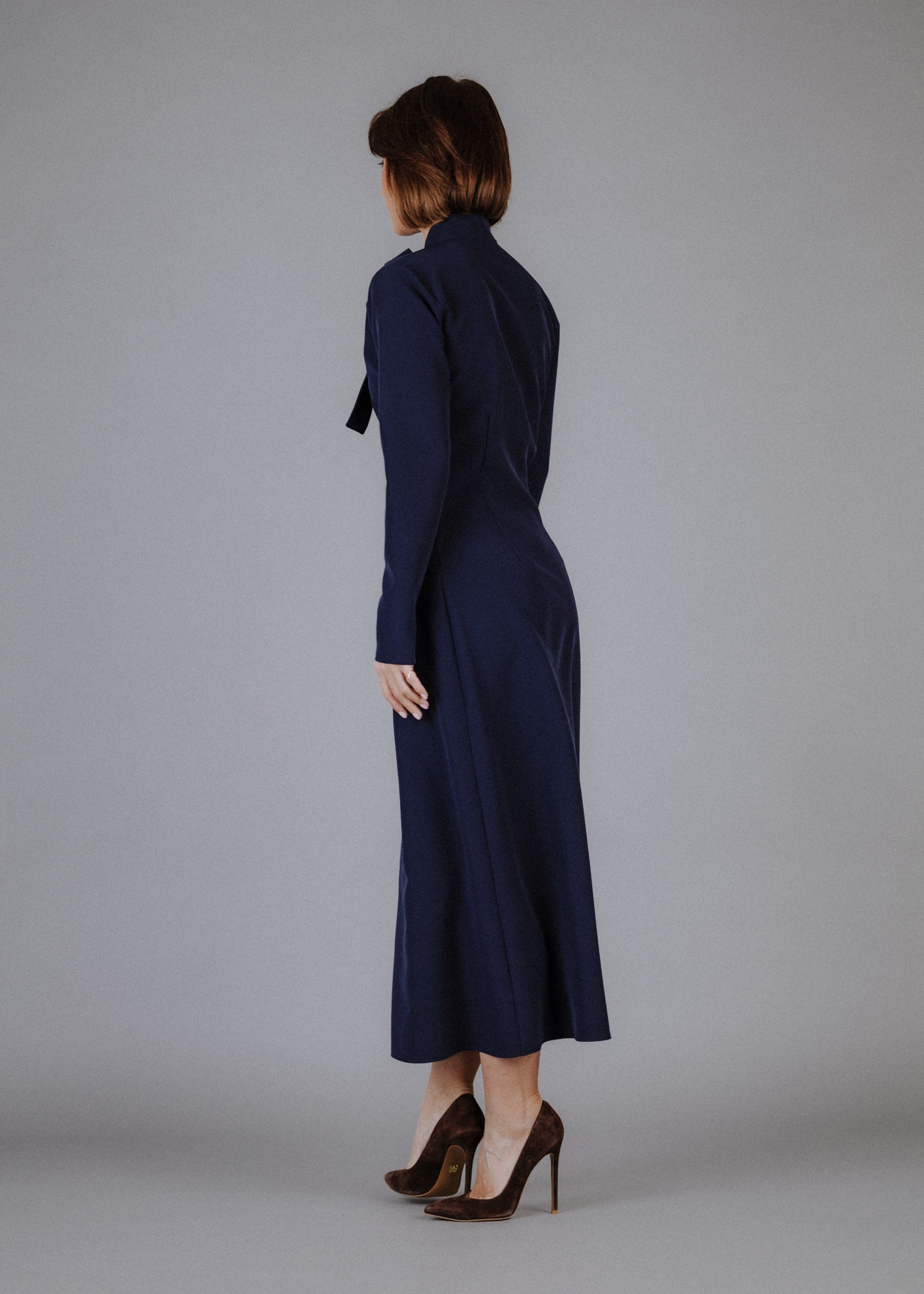 Fine fabric dress in dark blue