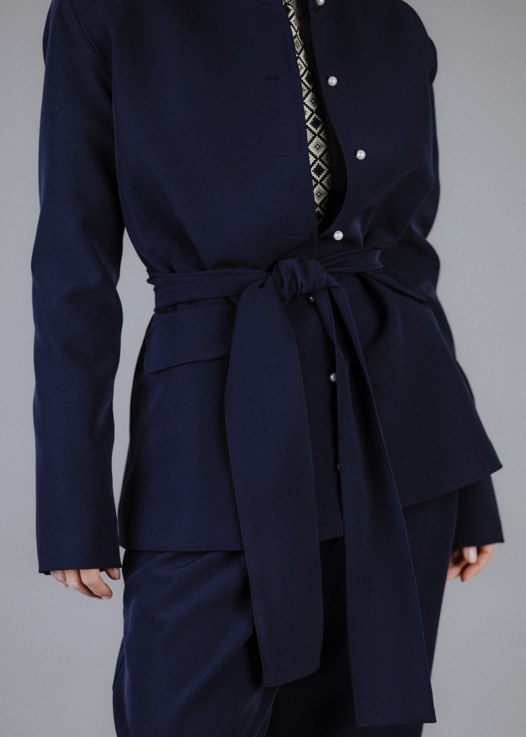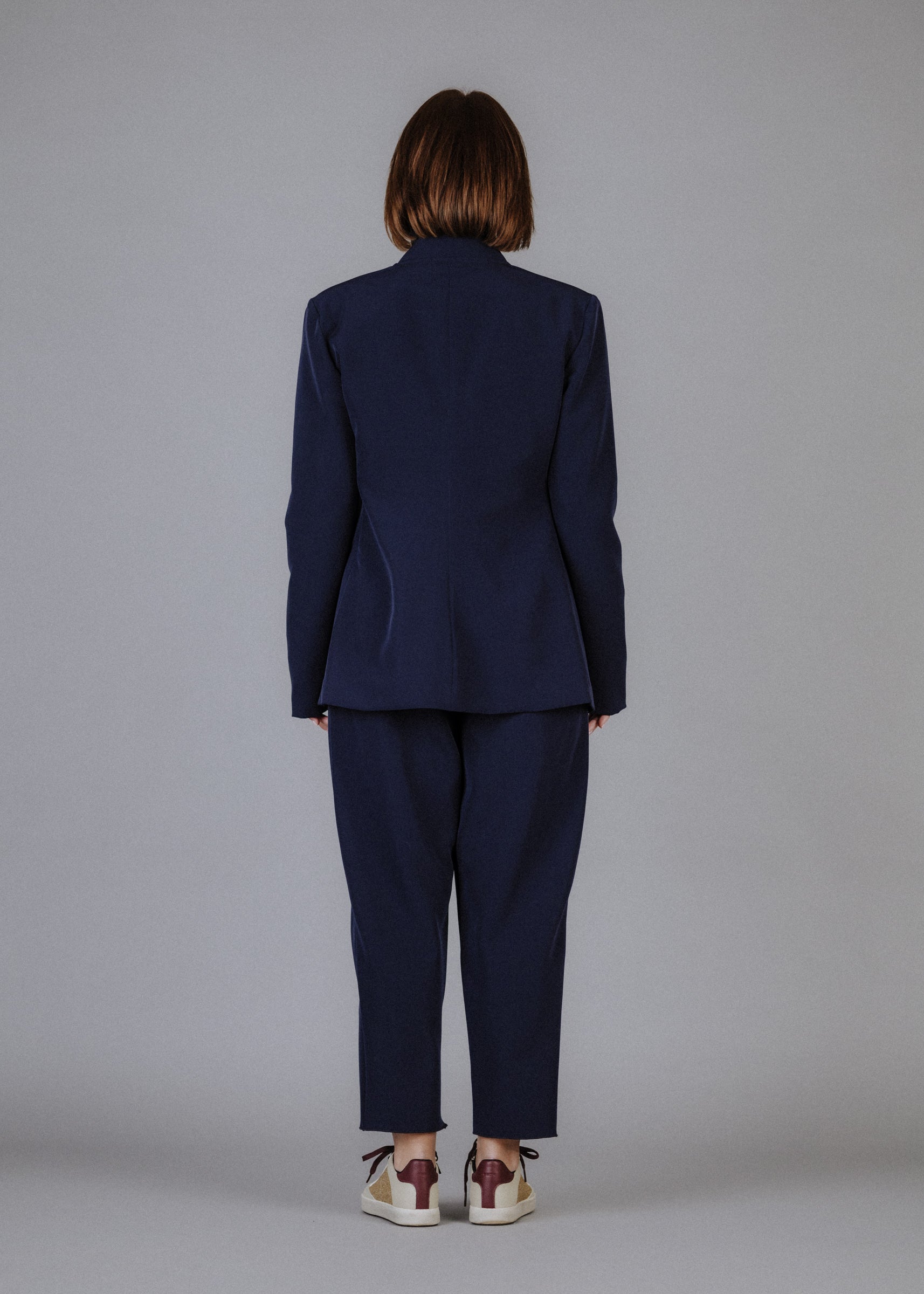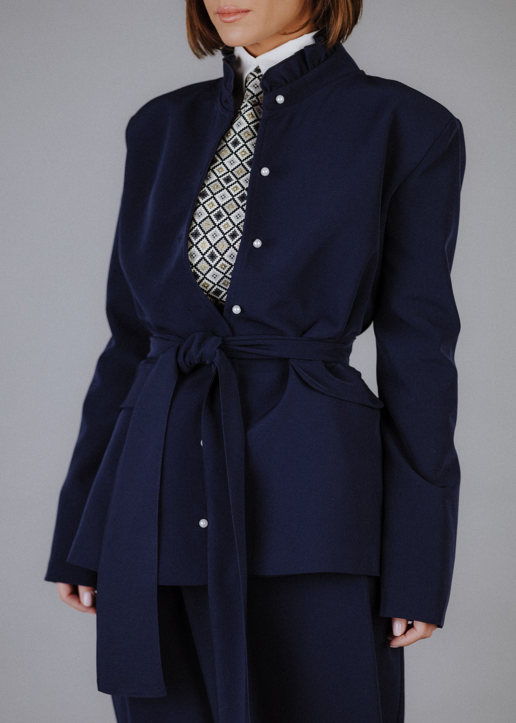 Ruffled collar jacket in navy blue