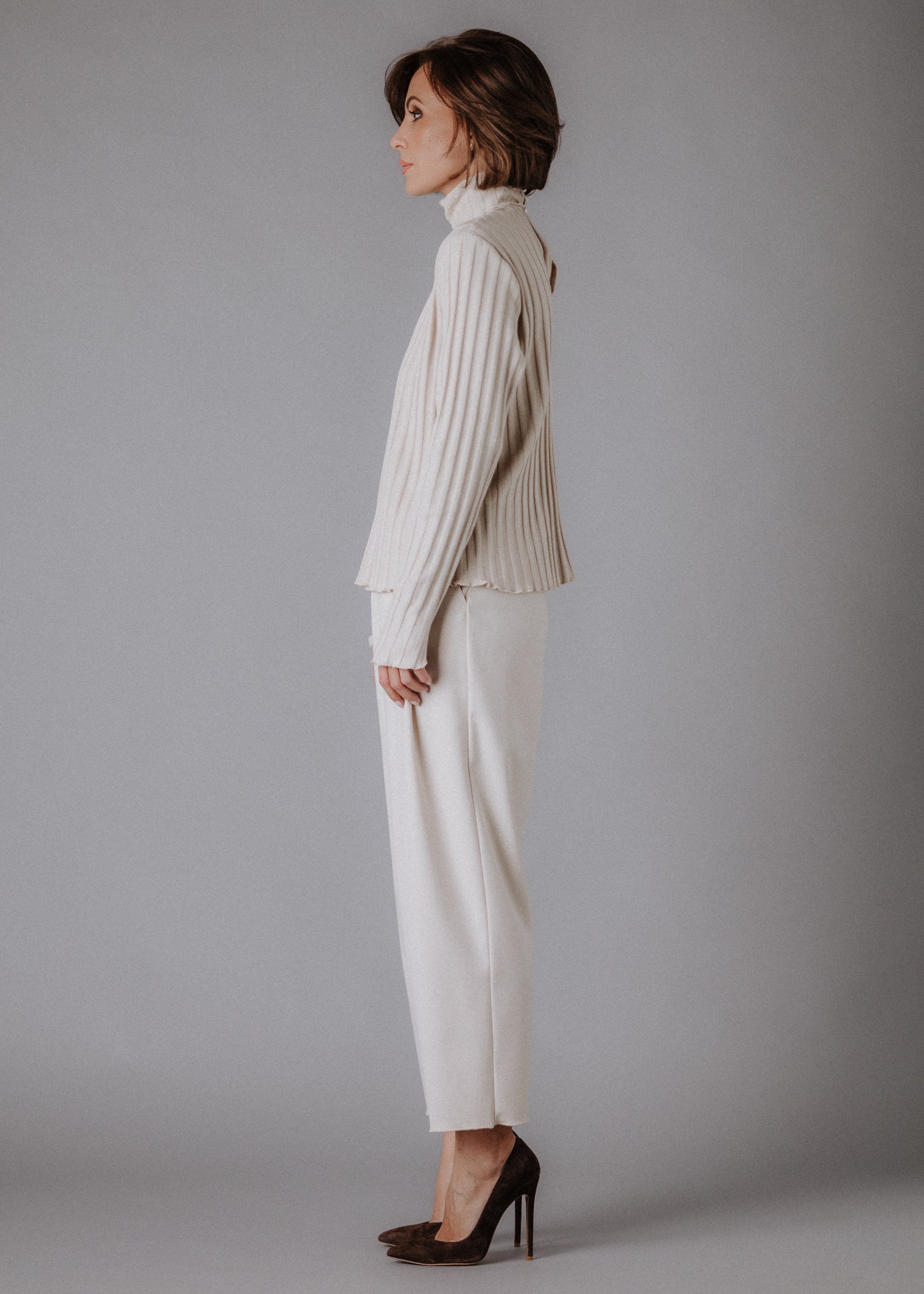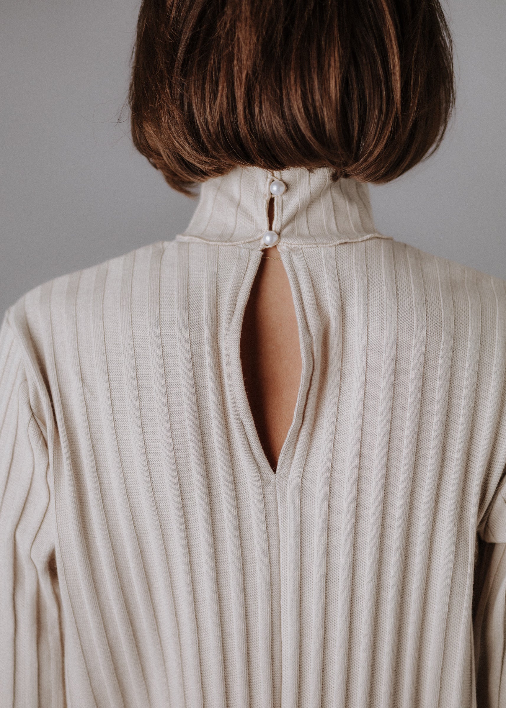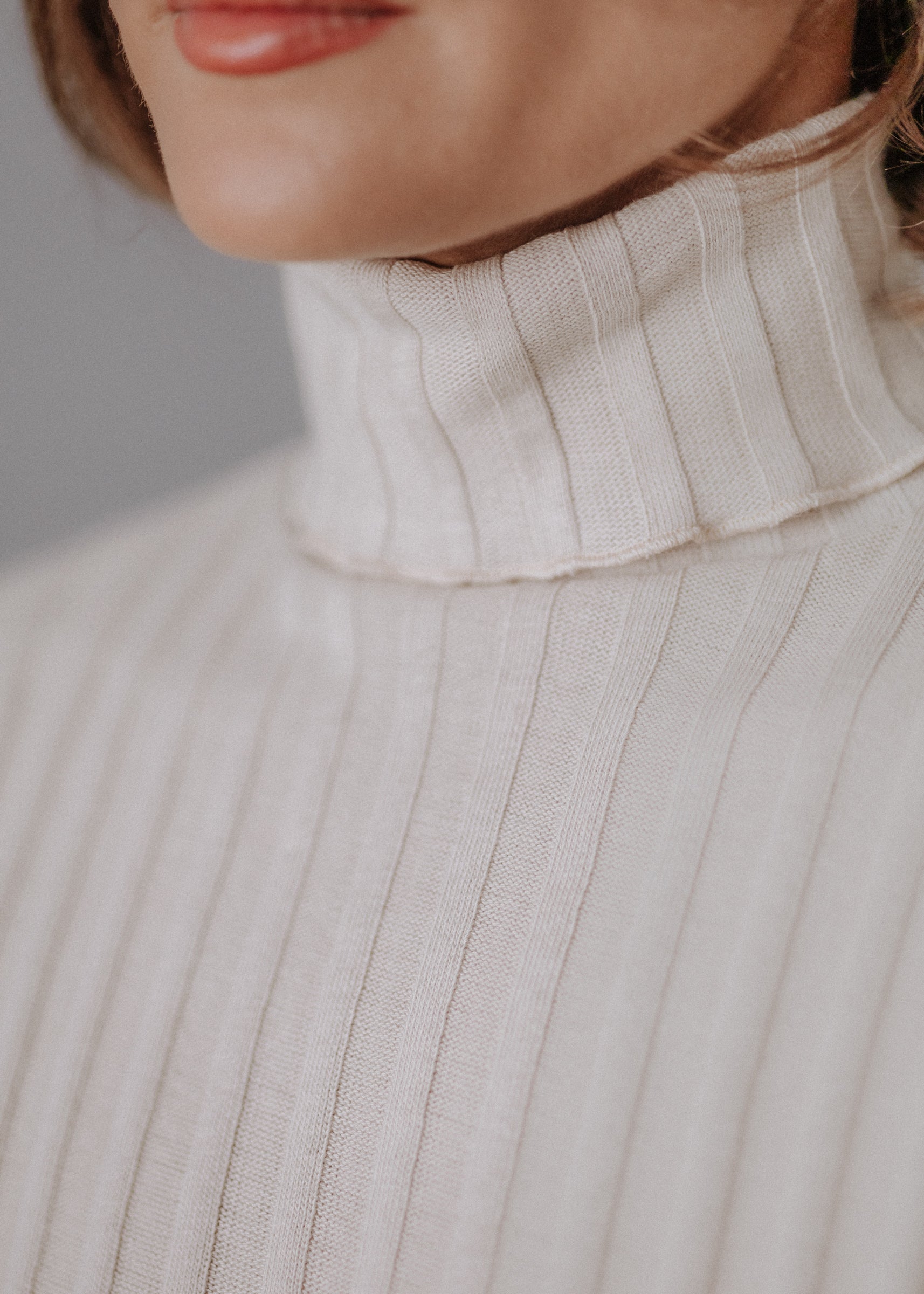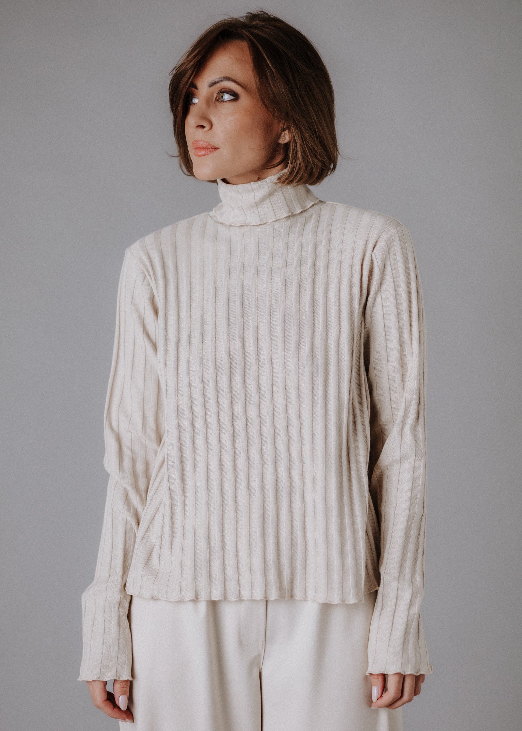 Turtleneck knitted fabric in pastel nude color
