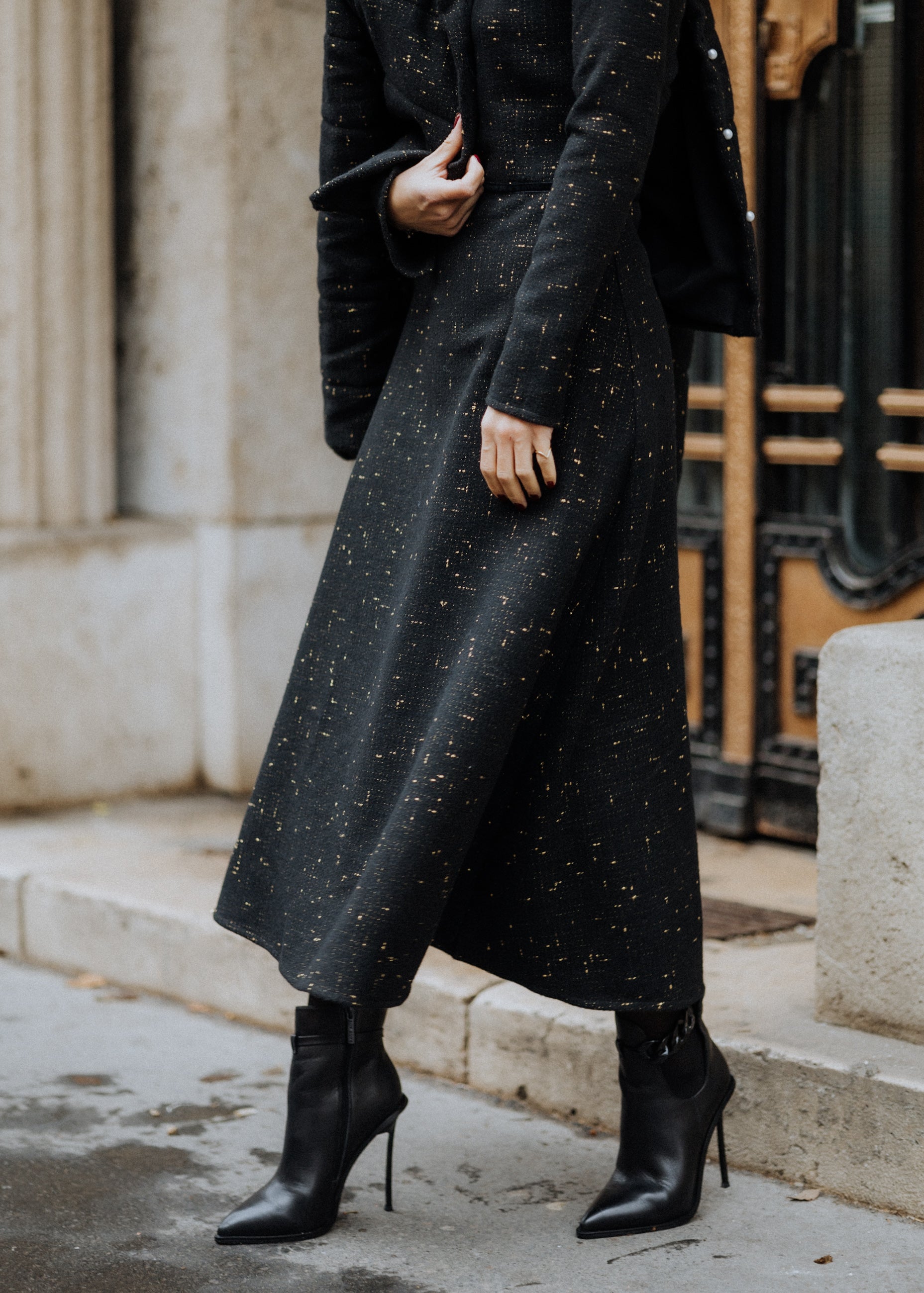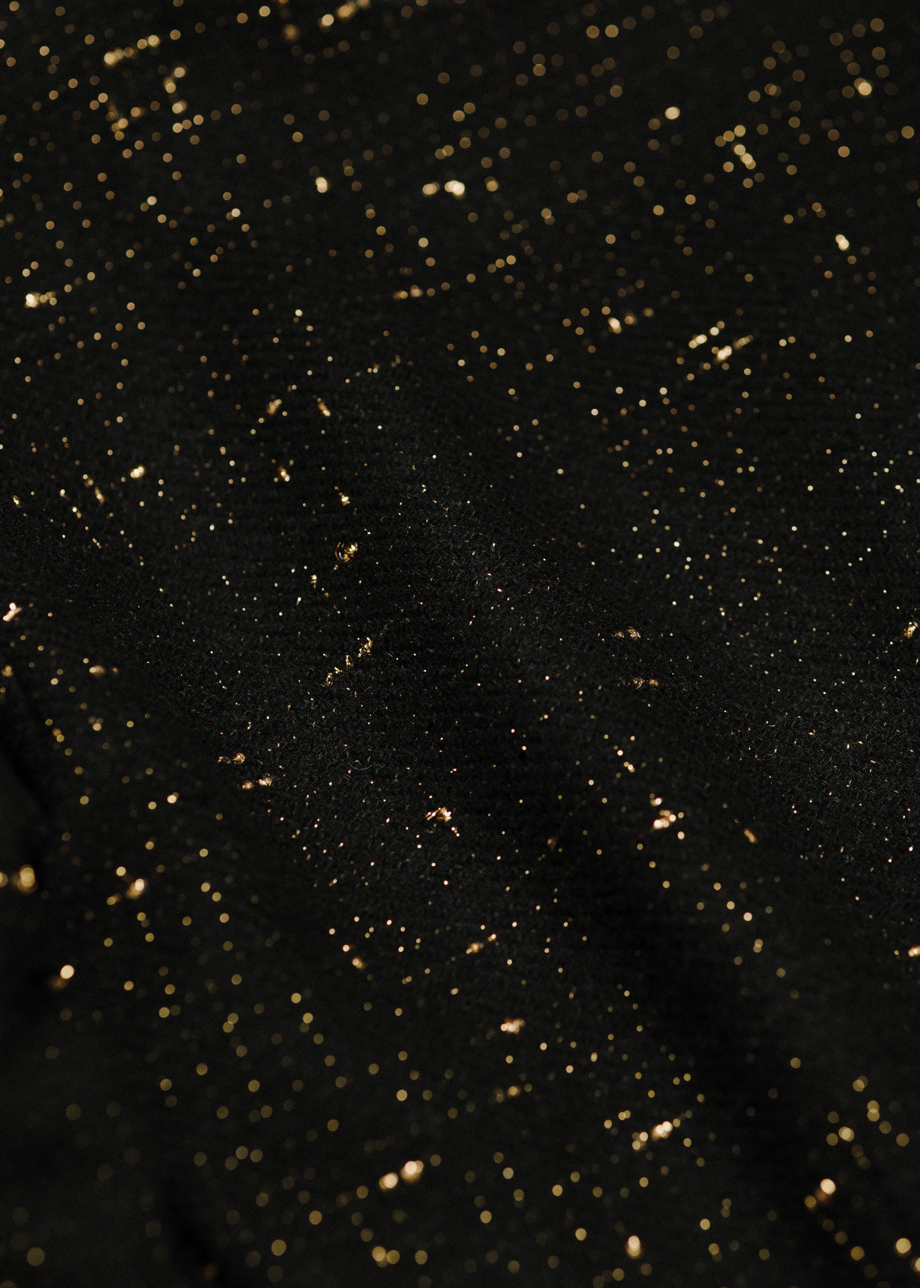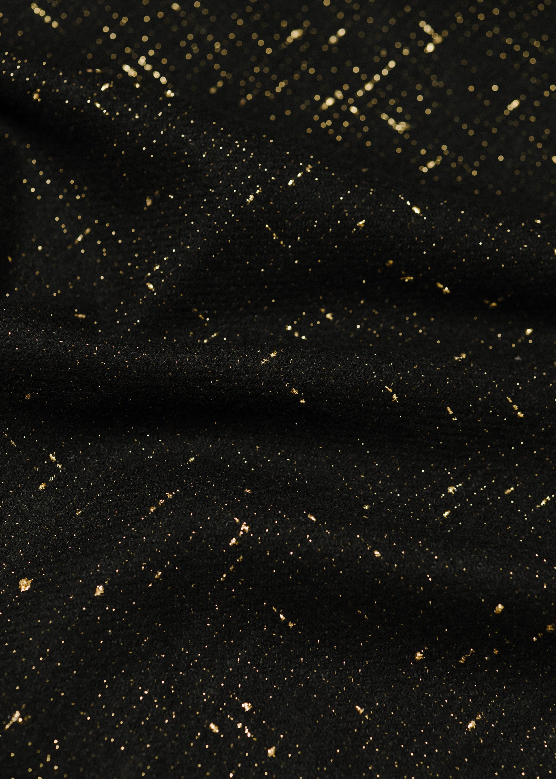 Fekete buklé ruha metál arany szálakkal és bársony díszítéssel.