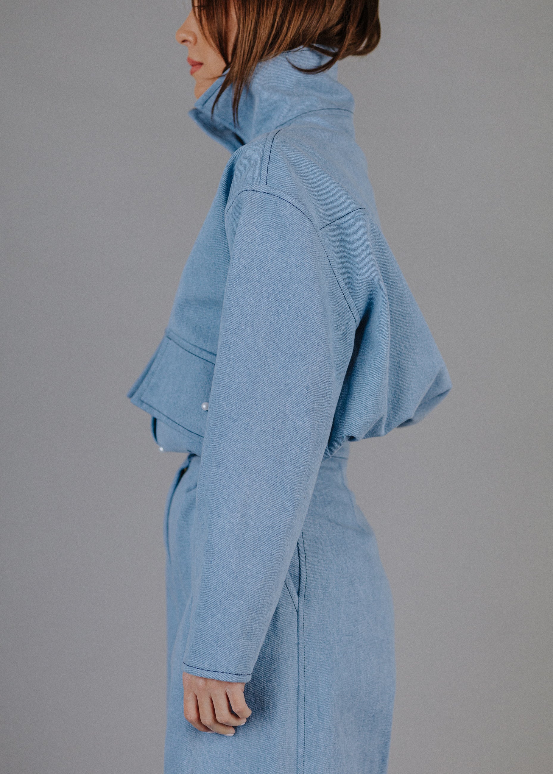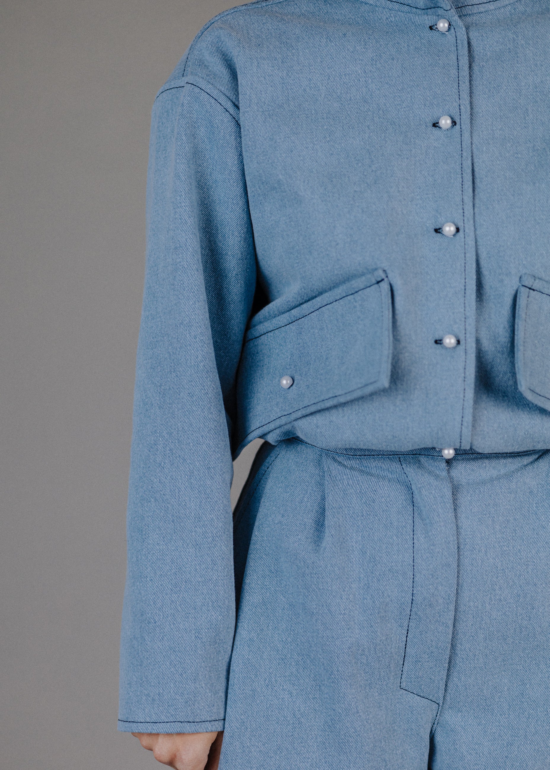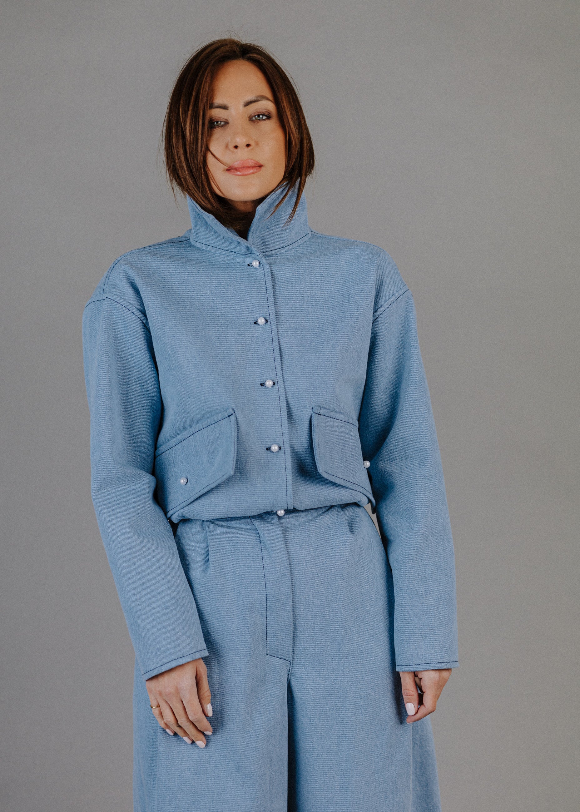 380 GRAMMOS FARMERBŐL KÉSZÜLT BOMBER FARMERKABÁT GYÖNGYGOMBOKKAL ELŐRENDELÉSRE.